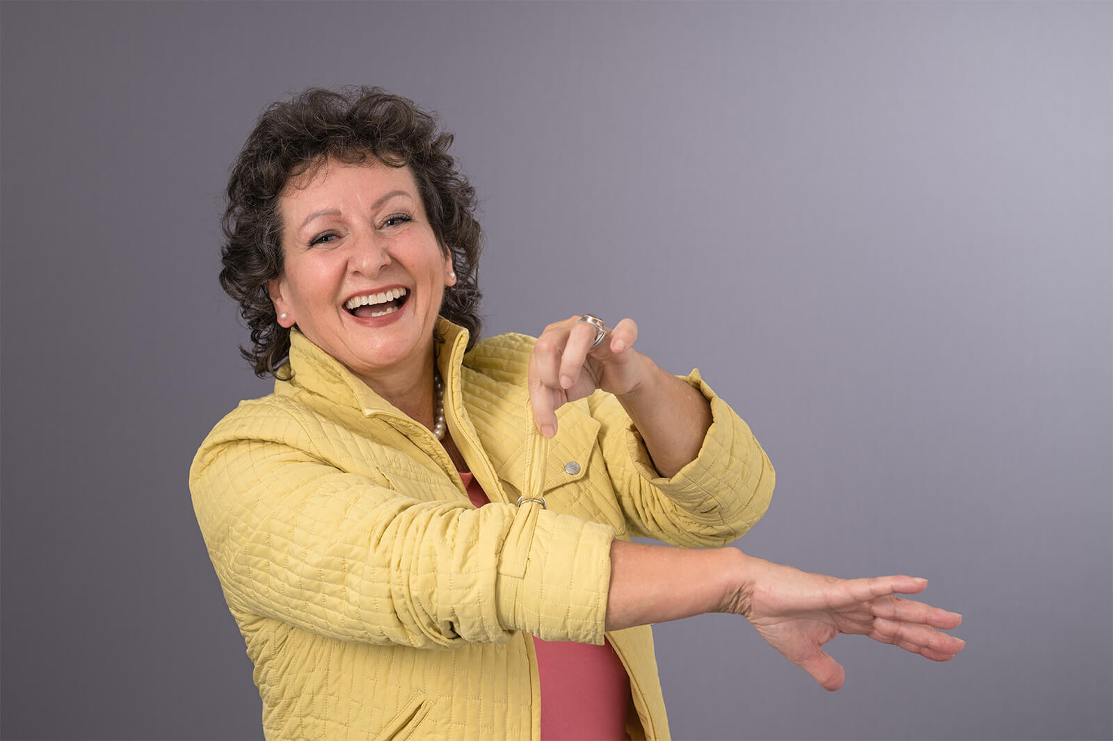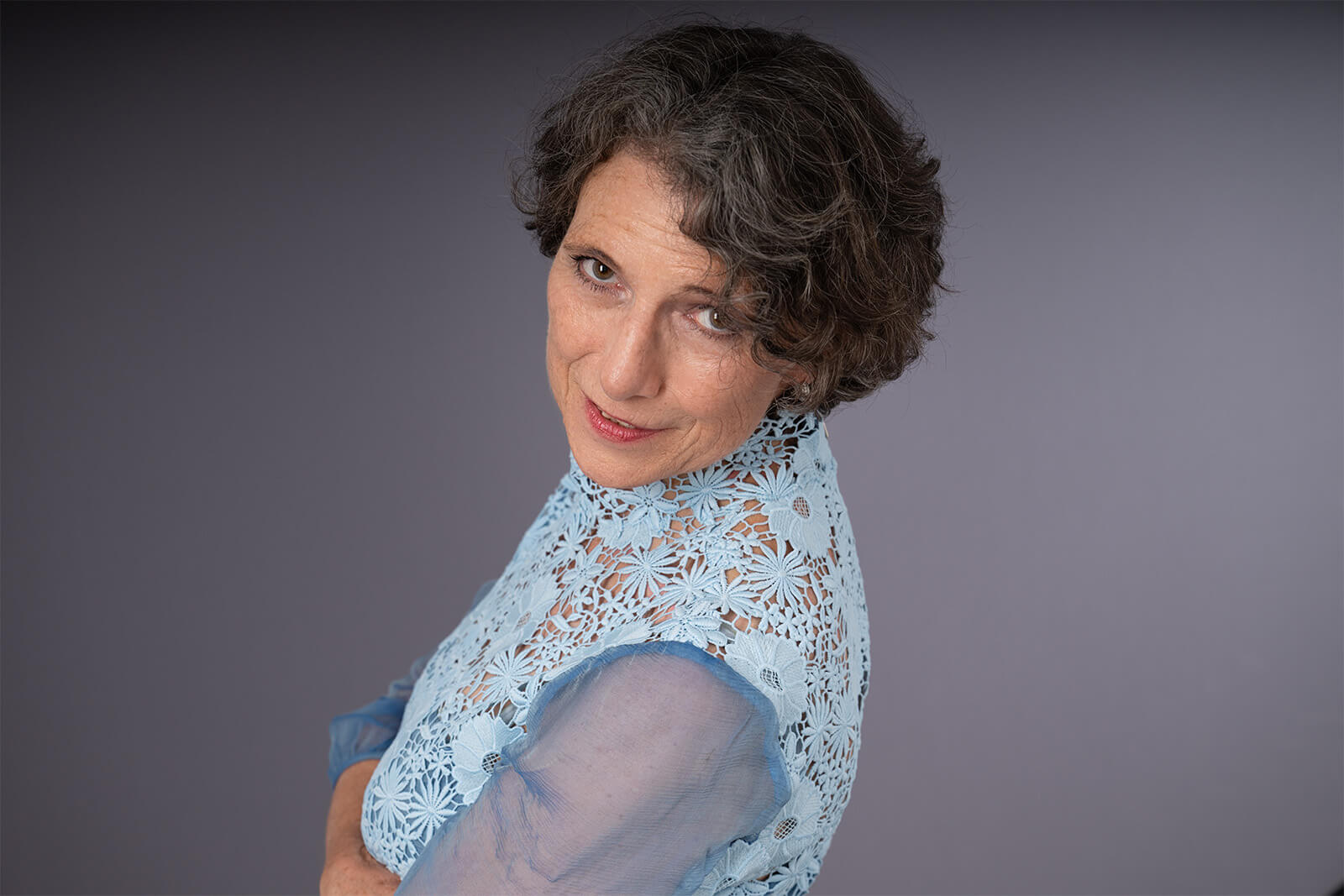- Ein individuelles Portrait-Shooting mit professioneller Ausleuchtung vor grauem Hintergrund